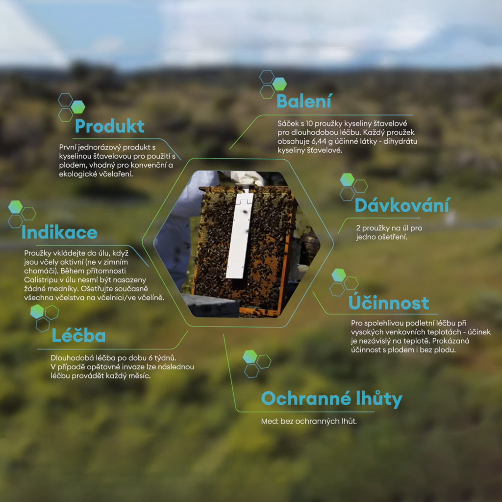Calistrip® Biox to nowoczesny, certyfikowany preparat weterynaryjny przeznaczony do zwalczania roztocza warrozy (Varroa destructor). Wykorzystuje specjalną matrycę z powolnym uwalniaaniem dwuhydratu kwasu szczawiowego, dzięki czemu oferuje skuteczne leczenie rodzin pszczelich z uwzględnieniem naturalnego funkcjonowania ula. Preparat jest dopuszczony do użytku w UE i stanowi odpowiedni wybór zarówno dla pszczelarstwa konwencjonalnego, jak i ekologicznego (BIO) – bez zbędnego ryzyka dla jakości miodu.