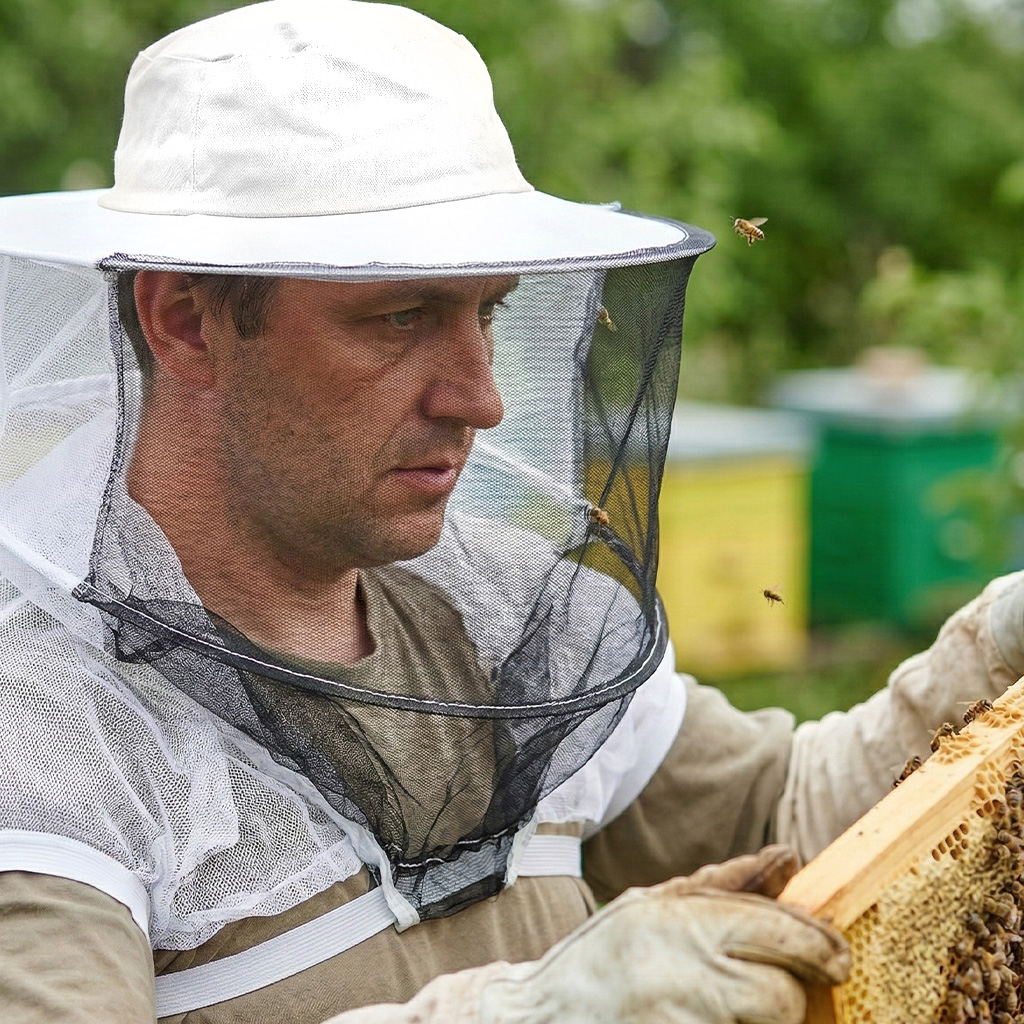 Ochronny kapelusz pszczelarski z siatką przez ręce