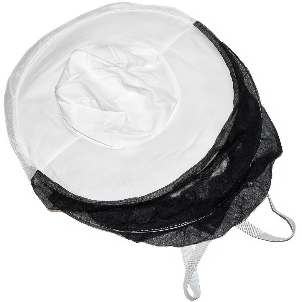 Ochronny kapelusz pszczelarski w uniwersalnym rozmiarze jest wyposażony w delikatną czarno-białą siatkę, która kończy się ściągaczem gumowym. Można go łatwo przewlec przez ręce, dzięki czemu siatka pozostaje podczas pracy napięta i się nie podwija. Kapelusz jest przyjemnie przewiewny, a dzięki drobnym oczkom przez siatkę dobrze widać.