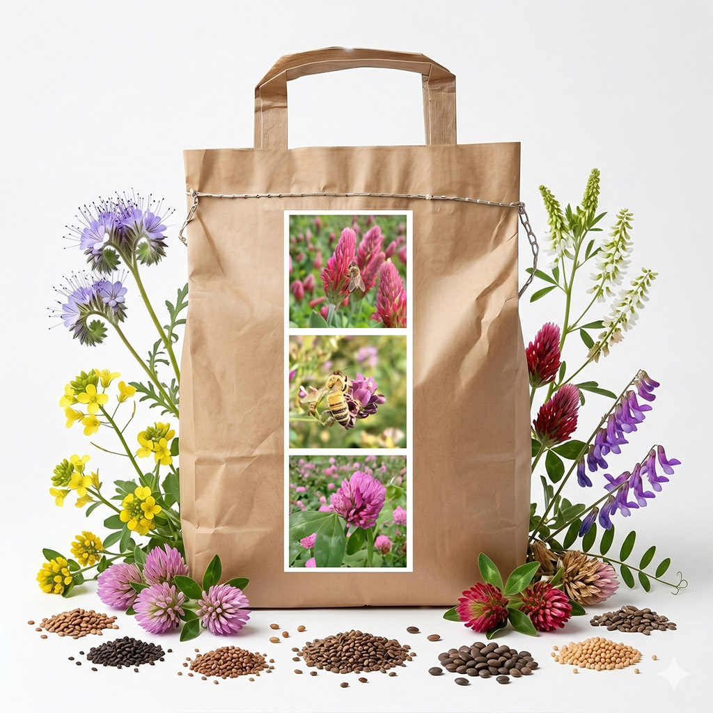 Tą mieszanką nie rozwiązujesz tylko kwestii źródła pokarmu dla pszczół – pomagasz także poprawić środowisko w okolicy pasieki. Bardziej zróżnicowana pasza zmniejsza stres rodzin pszczelich, wspiera ich witalność i może zwiększyć odporność na obciążenia sezonu (w tym presję, jaką stanowi warrooza). Jednocześnie jest to doskonały nawóz zielony: po zaoraniu uprawa wzbogaci glebę o materię organiczną i składniki pokarmowe dla kolejnych upraw.