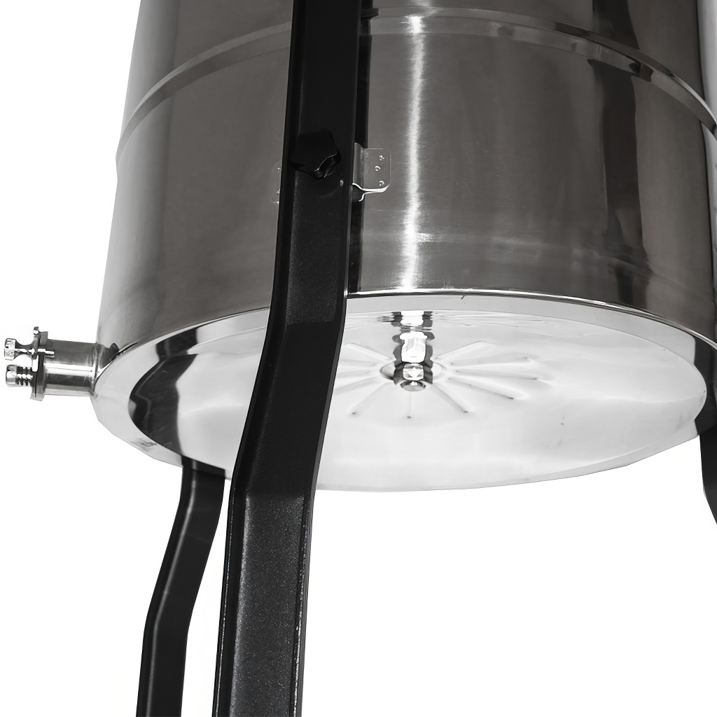 Miodarki są wyposażone w innowacyjne stożkowe dno, w które w jego najniższej części jest wpuszczony przyspawany kurek nierdzewny z zaworem nożycowym. Macie tak pewność, że z miodarki zawsze wypłynie cały miód bez reszty.