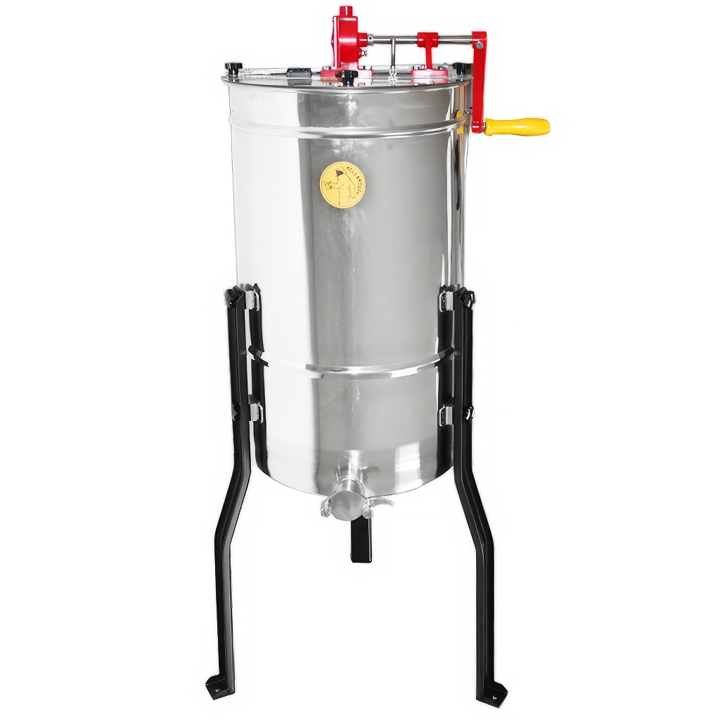 Innowacyjny jest także system nóg, które są na miodarce rozmieszczone i przymocowane tak, aby cała miodarka osiągnęła maksymalną stabilność. Nogi są z masywnego materiału i swoją własną wagą przyczyniają się do stabilności podczas wirowania. Dzięki prostemu, ale mocnemu połączeniu można nogi łatwo zdjąć, przez co staje się cała miodarka znacznie bardziej składana i możecie ją bezpiecznie przechować do dalszego użytku.