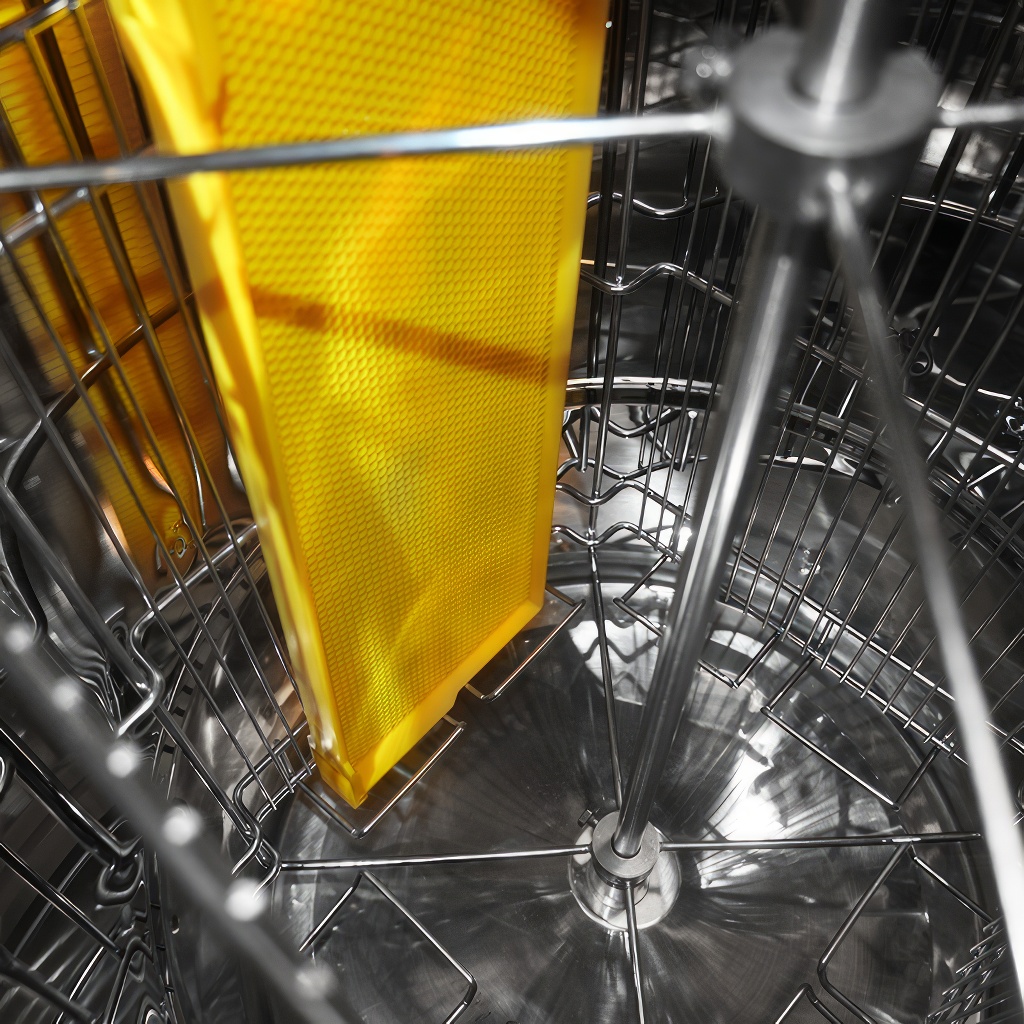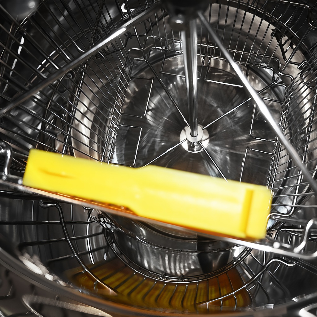 - Łatwy demontaż napędu i kosza miodarki – wygodne czyszczenie.