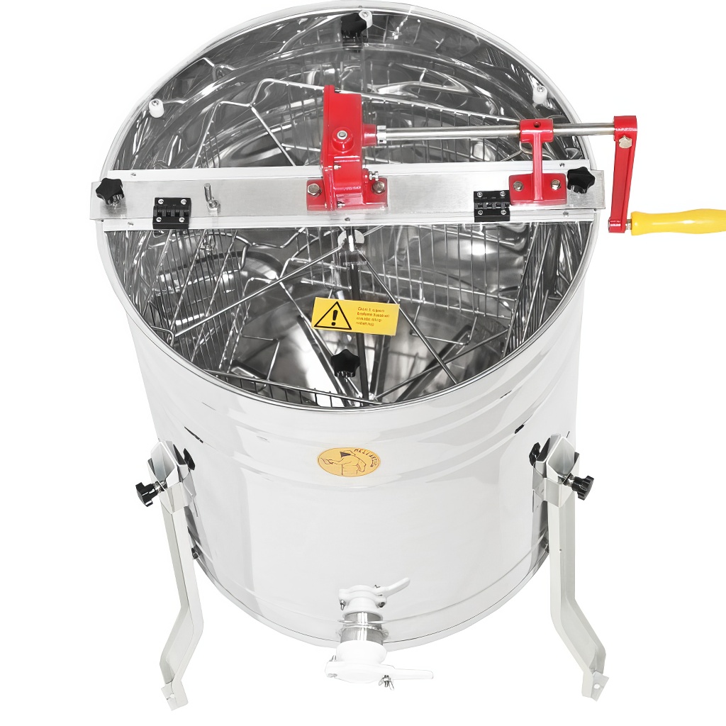 Tangencjalna miodarka na cztery ramki z napędem ręcznym. Szerokość kosza wynosi 31 cm, miodarka jest więc odpowiednia dla większości ramek. Miodarka jest wykonana z polerowanych blach nierdzewnych, spełniających atesty do kontaktu z żywnością.