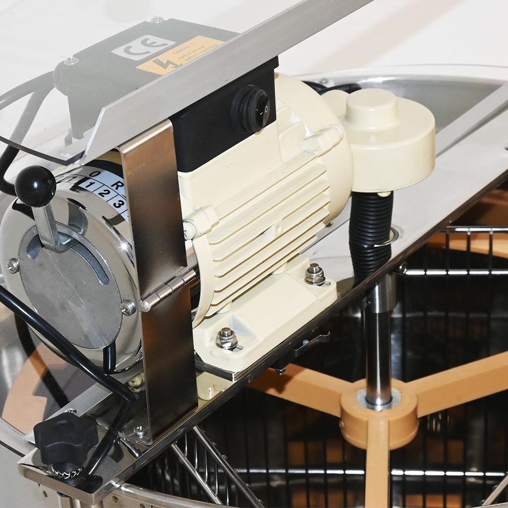 Miodobrania serii Maxima są wyposażone w niezawodny silnik elektryczny o wystarczającej mocy 110 W. Te silniki są wyposażone we własny wentylator, dla lepszego chłodzenia. Częścią silnika jest solidny manualny system płynnej regulacji obrotów. Przeniesienie siły silnika do kosza miodobrania jest zapewnione przez mechaniczną skrzynię biegów dla optymalnego zakresu obrotów wirowania.