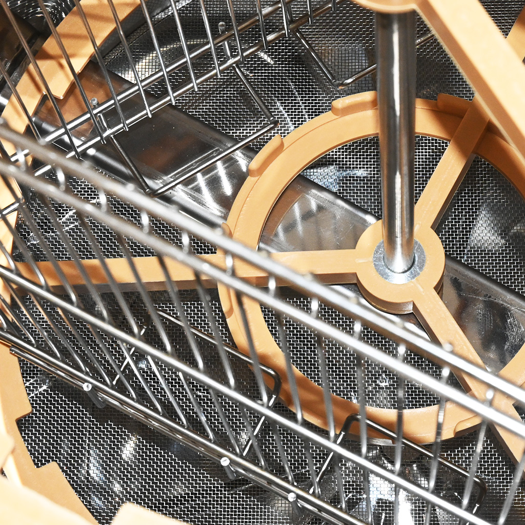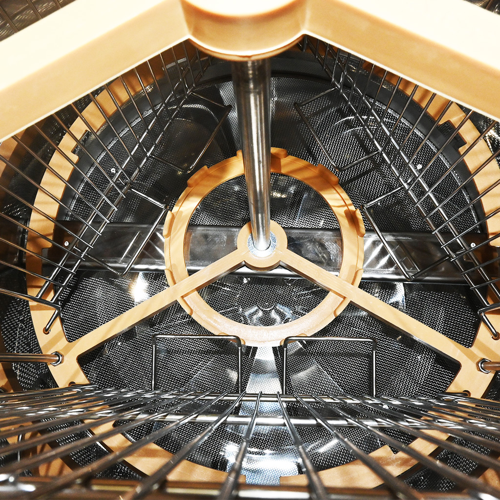 Kosze miodobrań są wykonane z gęstszą siatką drutów nierdzewnych, dzięki temu siła plastra podczas wirowania jest rozłożona na większą powierzchnię i nie dochodzi do wcinania się drutów w dzieło pszczele. Do produkcji koszy używane są okrągłe pręty, które są odporne na skręcanie. Okrągłe powierzchnie bez ostrych krawędzi łatwiej się też czyszczą.