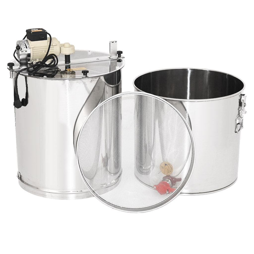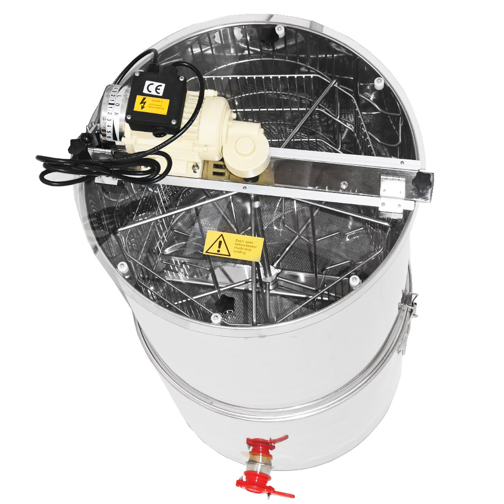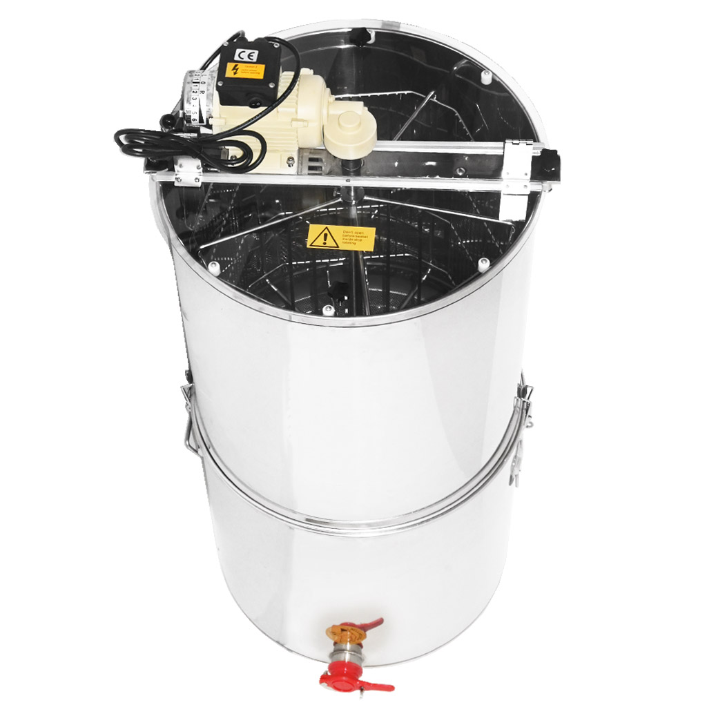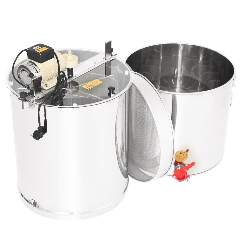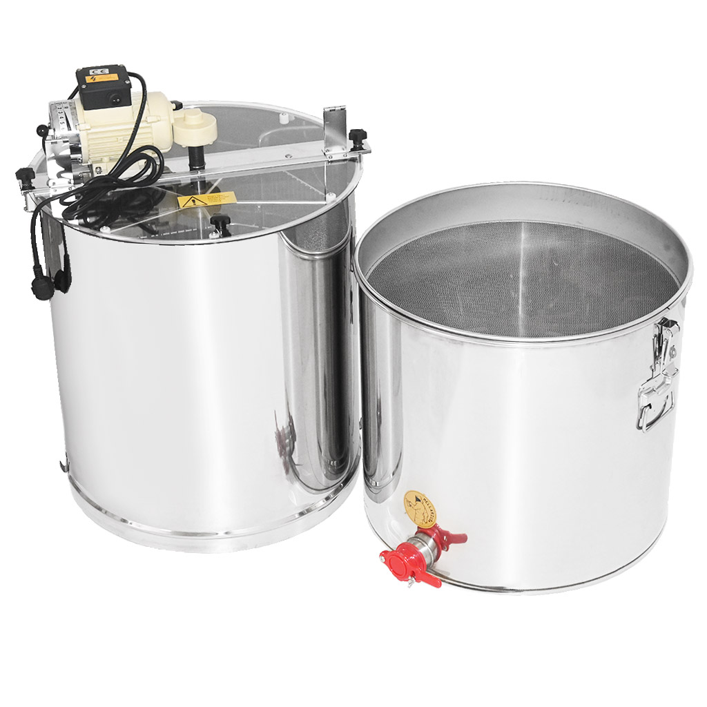 Tangencjalny miodobrań na pięć ramek (lub promieniowy na dziesięć ramek) z napędem elektrycznym z własnym zbiornikiem i sitem. Miodobrań jest trwale połączony ze zbiornikiem za pomocą zacisków. Między miodobranem a zbiornikiem znajduje się duże sito o średnicy 52 cm. Szerokość kosza wynosi 26 cm, miodobrań jest więc odpowiedni dla większości ramek. Zaletą tego rozwiązania jest zintegrowane sito i zbiornik, dzięki czemu w jednym urządzeniu otrzymujesz wszystko co potrzebne do odwirowywania, przecedzania i spuszczania miodu.