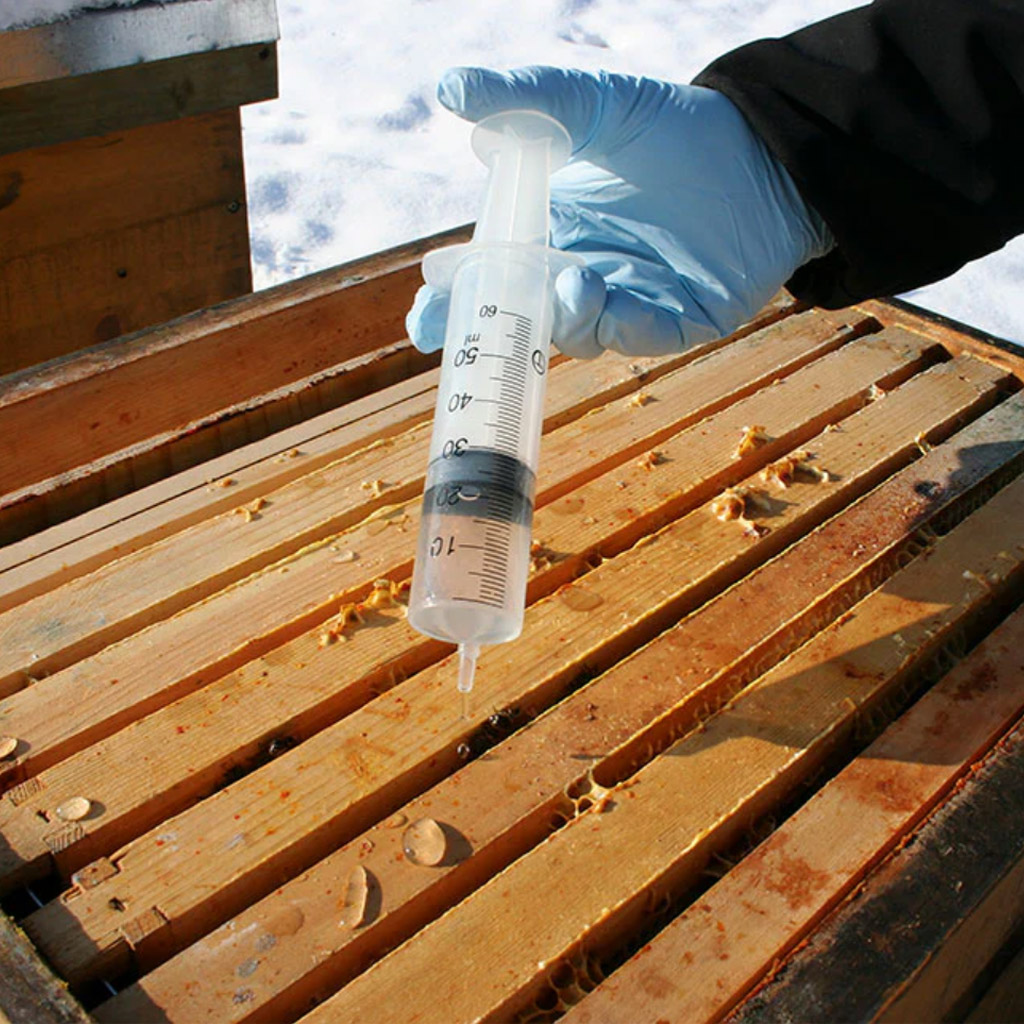 buteleczka 275g nadaje się dla do 15 rodzin pszczelich, a buteleczka 1000g dla do 50 rodzin pszczelich.