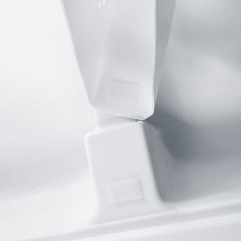 Dno miski jest lekko wyprofilowane do środka, dzięki czemu pszczoły pobierają roztwór niemal bez reszty, a w rogach nie pozostaje stary pokarm, który mógłby pleśnieć. Wewnętrzne ścianki są żebrowane, aby pszczoły miały pewną przyczepność podczas pobierania pokarmu. Dla jeszcze lepszej przyczepności można ścianki przed pierwszym użyciem lekko zmatowić papierem ściernym.