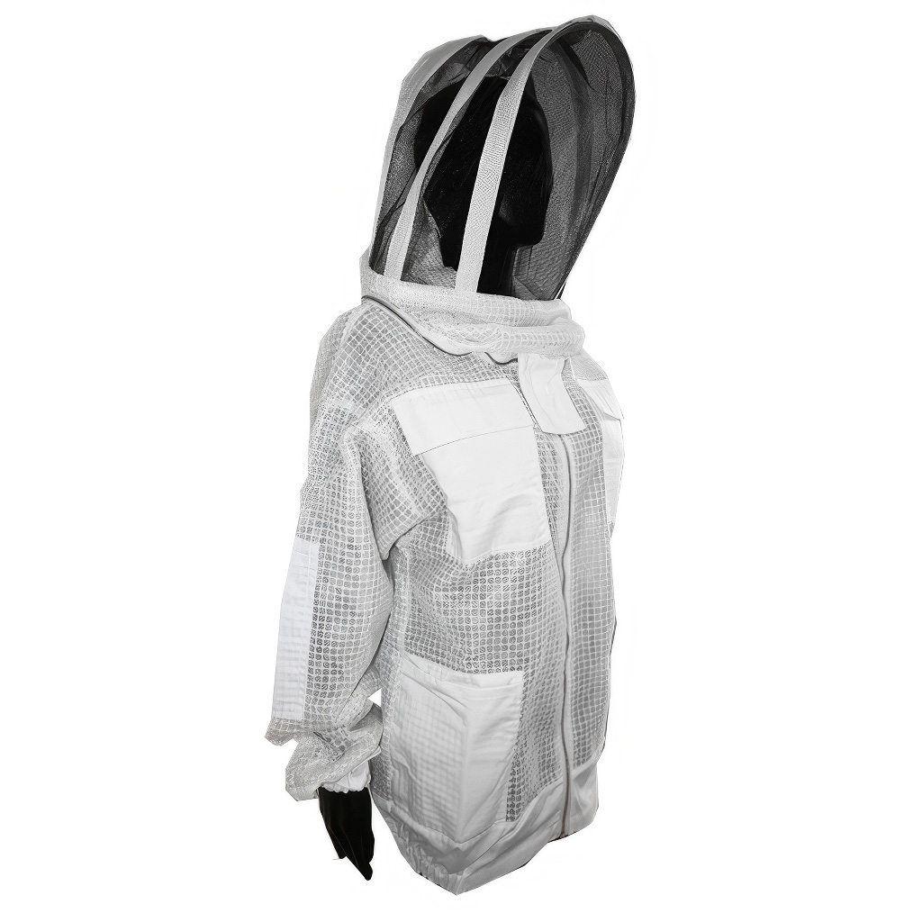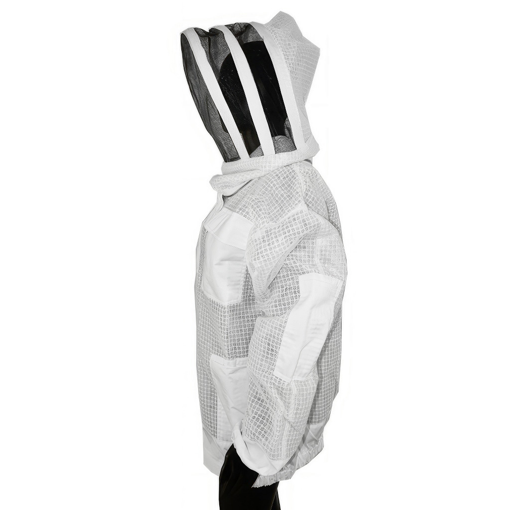Bluza jest starannie uszyta z mocnej tkaniny bawełnianej, która jest wystarczająco gruba, aby znacznie ograniczyć przebicie żądłem. Jasne wykonanie dodatkowo pomaga utrzymać pszczoły w spokojniejszym nastroju – ciemne odcienie mogą bowiem bardziej drażnić rodziny pszczele. Nacisk położono również na miejsca narażone: okolica szyi jest zabezpieczona tak, aby pszczoły nie dostały się pod odzież, a końce długich rękawów są ściągnięte gumką. Rękawy można w ten sposób łatwo wsunąć do rękawic pszczelarskich i zminimalizować możliwość wślizgnięcia się pszczoły do środka.
