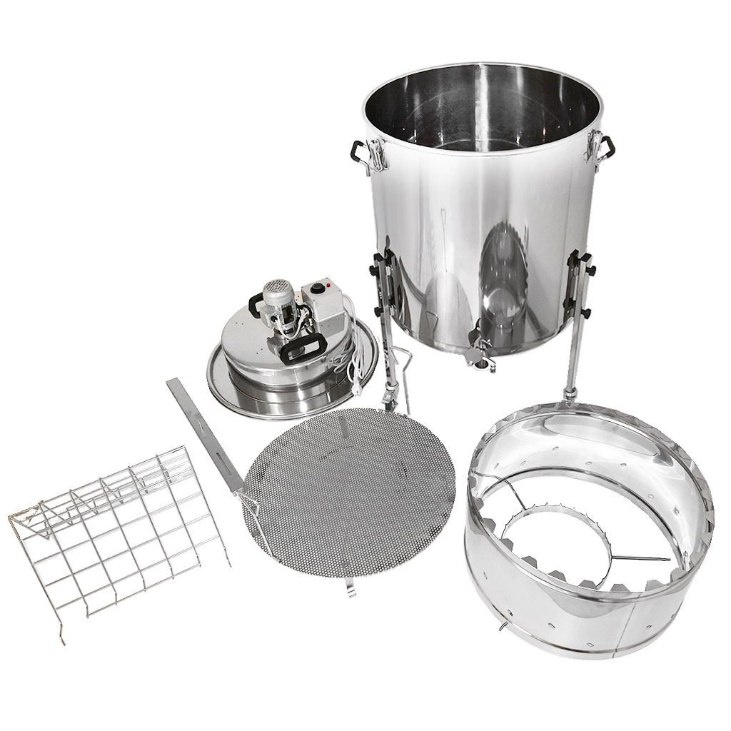 Urządzenie dostarczamy gotowe do natychmiastowego użycia. Dla łatwego przemieszczania w miodowni wyposażone jest w nogi z kółkami z hamulcem.