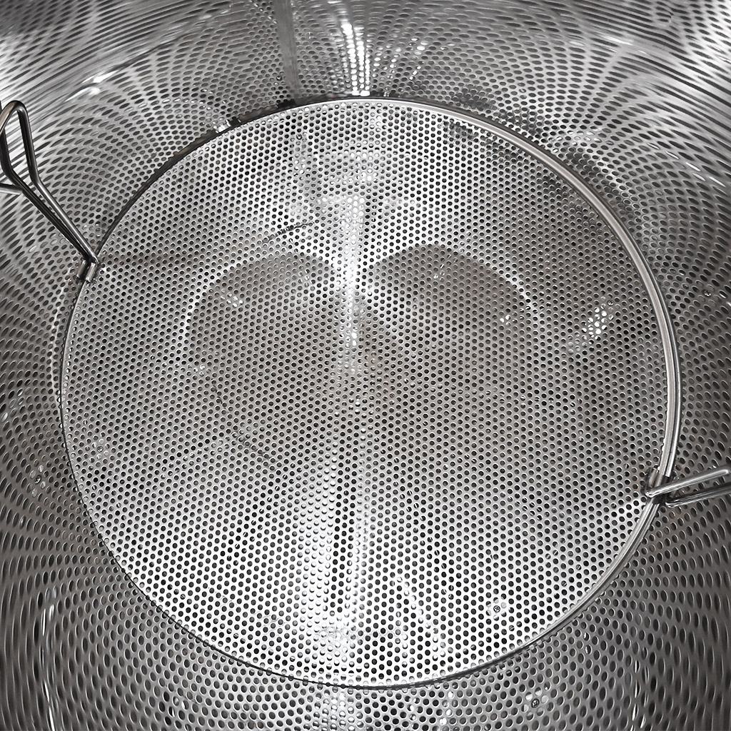 - Nierdzewny zbiornik z wewnętrznym sitem i stojakiem
