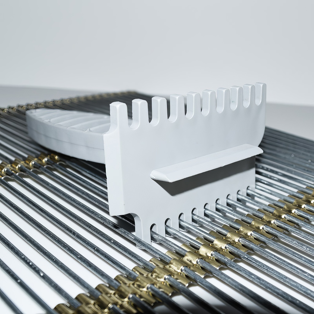 Skrobaczka do kratek matecznych - całkowicie plastikowa. Skrobaczka służy do czyszczenia metalowych kratek matecznych z drutami o średnicy 2 mm. Nadaje się również do kratek plastikowych.