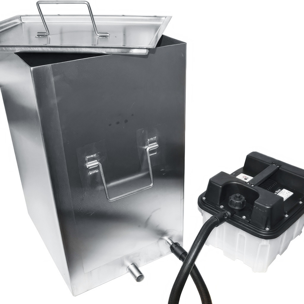 Doskonała wytapiarka nierdzewna z jednym wytwarzaczem oferuje wysoką efektywność i oszczędność energii oraz pieniędzy. Parownica przeznaczona jest do pozyskiwania wosku albo bezpośrednio ze starych ramek woskowych, albo z samych wyciętych woskowin za pomocą gorącej pary. Jako źródło pary wykorzystuje generator, który uchodzi bezpośrednio do przestrzeni pod sitem. Dzięki temu dochodzi do doskonałego i stopniowego wytapiania właśnie od dołu. Para ogrzewa wosk, a poczwarki opadają na dno, gdzie znajduje się sito. Uzyskany wosk wyceka samoczynnie i na bieżąco do umieszczonego obok pojemnika (nie wchodzi w skład zestawu), co minimalizuje straty i utrzymuje miejsce pracy w czystości.