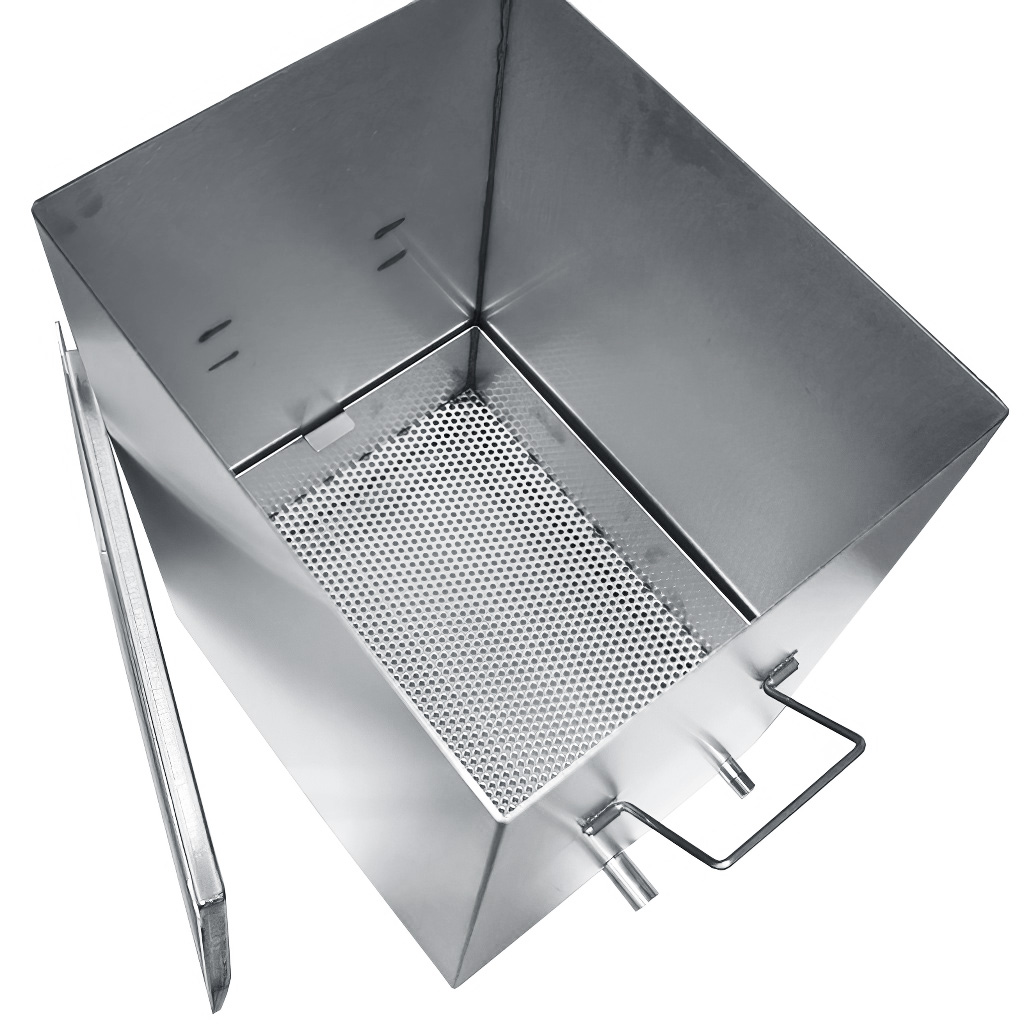 Szukasz niezawodnego, szybkiego i oszczędnego sposobu na przetworzenie starych woskowin i uzyskanie doskonale czystego wosku pszczelego? Mniejsza wytapiarka - wytapiarka do wosku nierdzewna + 1 x wytwarzacz pary jest idealnym rozwiązaniem dla każdego pszczelarza, który chce ułatwić sobie wymagającą pracę i zaoszczędzić cenny czas. Parownica przeznaczona jest do łatwego i szybkiego wytapiania wosku bezpośrednio z ramek lub z woskowin przy użyciu pary wodnej, którą wytwarza jeden wytwarzacz pary (część składowa wytapiarki). Parowa wytapiarka nierdzewna składa się z masywnego zbiornika ze stali nierdzewnej i sita na ramki lub woskowiny.