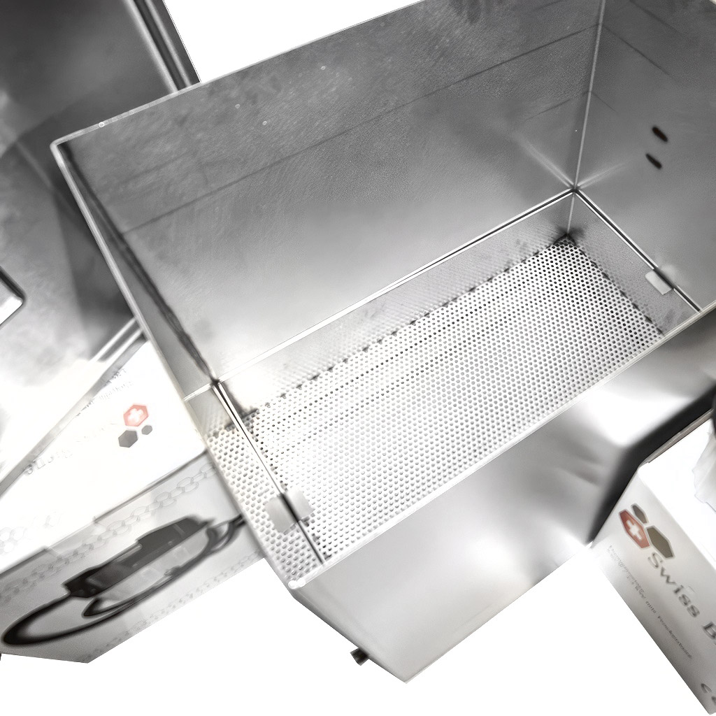 Kluczową zaletą jest możliwość topienia całych ramek – bez żmudnego wycinania plastrów. Ramki po prostu wkładasz do kosza, a para zajmuje się resztą. Pojemność wynosi około 24 ramek o wymiarach 39 × 24 (lub odpowiadającą ilość ramek Langstroth i innych popularnych rozmiarów), więc nadaje się do średnich i większych pasiek.