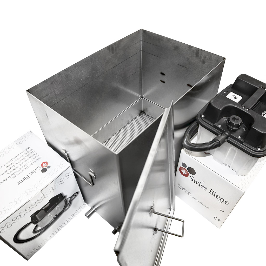 Chcesz uprościć i przyspieszyć wytapianie wosku? Ten wielopojemnościowy stalowy woskotopik jest przeznaczony dla pszczelarzy, którzy przetwarzają większą ilość ramek i potrzebują niezawodnego urządzenia o długiej żywotności. Solidna konstrukcja i dwa niezależne wytwarzacze pary znacznie przyspieszają cały proces i skracają czas pracy z woskiem.