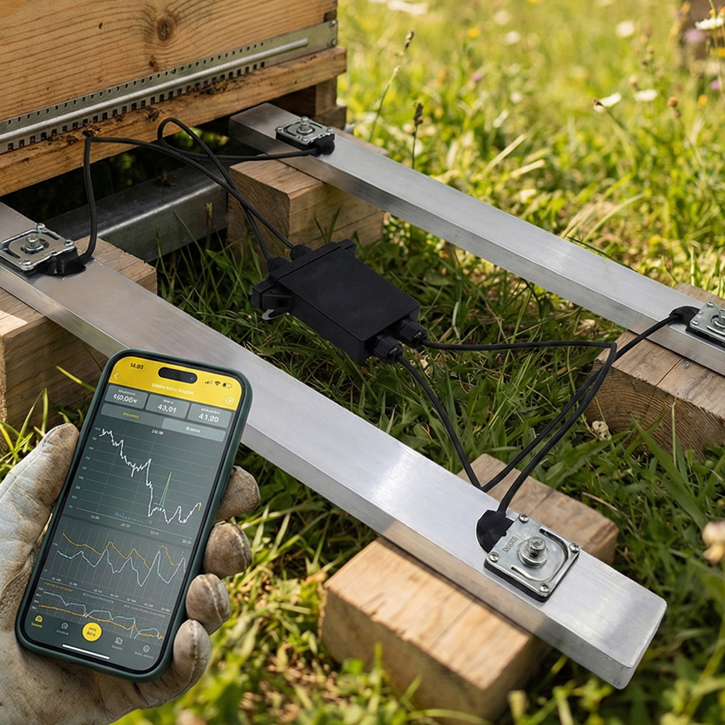 Waga ulowa dla jednego ula należy do najpraktyczniejszych pomocy dla nowoczesnego pszczelarstwa – a jednocześnie jest świetnym prezentem dla każdego pszczelarza, który chce mieć dokładne dane o swoich rodzinach pszczelich. Jest to proste, ale precyzyjne urządzenie, które na bieżąco rejestruje zmiany masy ula i pomaga w ten sposób śledzić pożytek, zużycie zapasów oraz ogólny rozwój rodziny pszczelej w czasie. Oprócz masy waga rejestruje również temperaturę i wilgotność zewnętrzną, dzięki czemu masz lepszy przegląd warunków na stanowisku pasiecznym. Wszystko przejrzyście przetwarza inteligentna aplikacja Bee Hive Monitoring. Dzięki uniwersalnej konstrukcji waga nadaje się do różnych typów uli, a instalacja i obsługa są szybkie i łatwe.