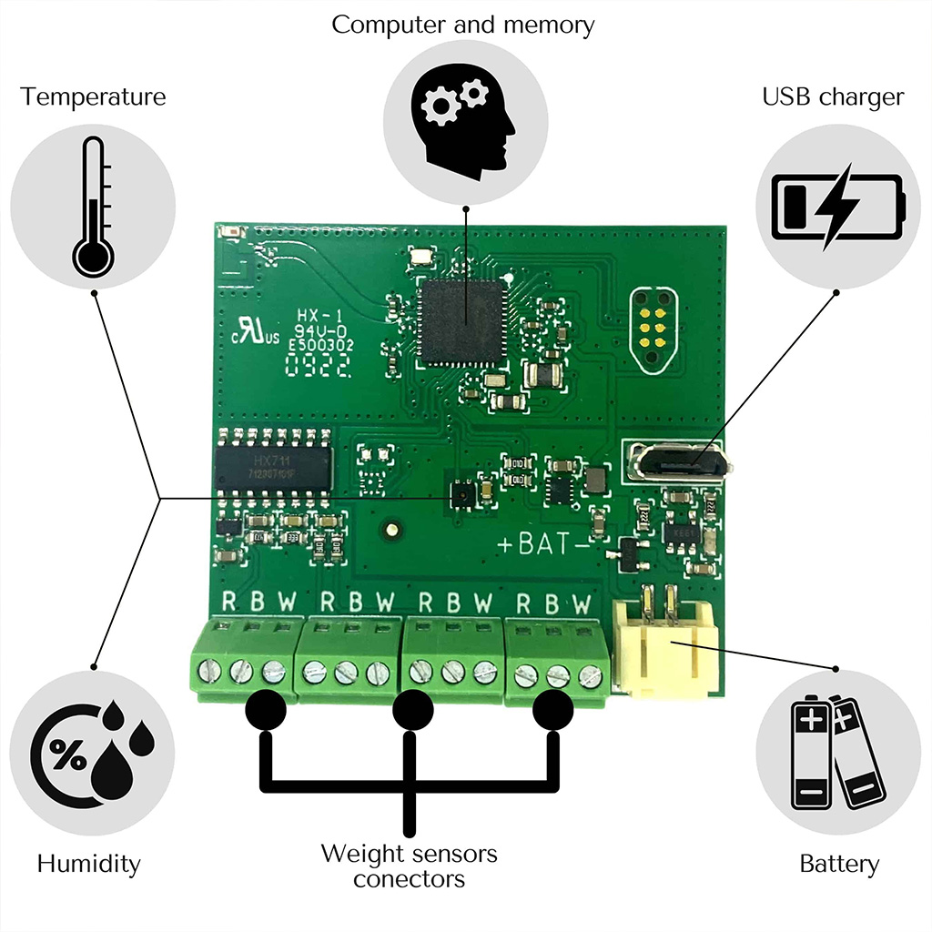 | Komunikacja | Bluetooth (zasięg 100 m na otwartej przestrzeni, 5–50 m pod ulem). Opcjonalnie moduł GSM (nieograniczony zasięg). |